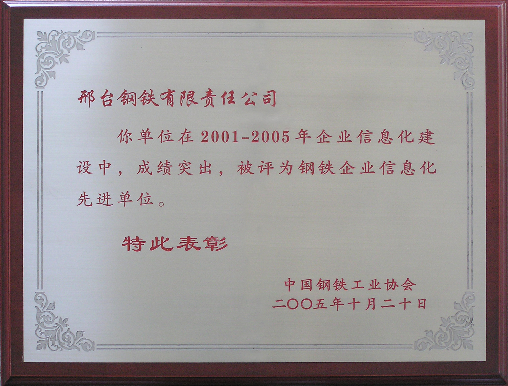 Xingtai Steel was awarded National Metallurgy Industry Information Work Advanced Unit.
