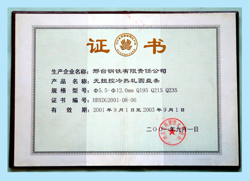 無(wú)扭控冷熱軋圓盤(pán)條獲河北省質(zhì)量信得過(guò)產(chǎn)品