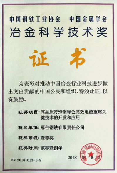 邢鋼綠色重熔技術喜獲全國冶金科技一等獎