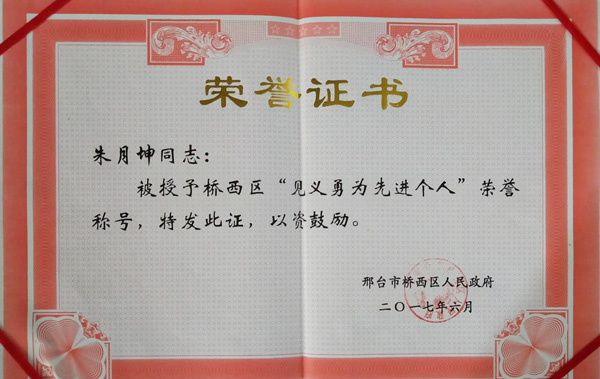 邢鋼質(zhì)量控制部朱月坤被授予邢臺(tái)市優(yōu)秀退役軍人榮譽(yù)稱號