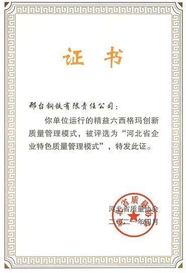 - 邢鋼獲評(píng)首批“河北省企業(yè)特色質(zhì)量管理模式”