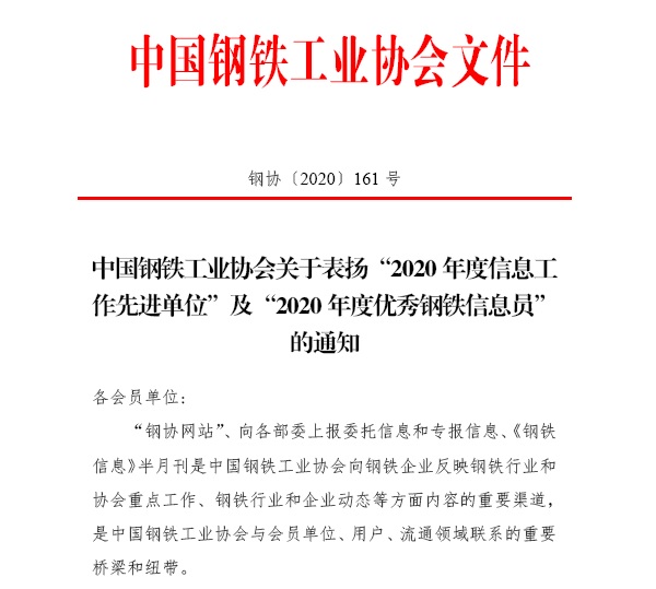 邢鋼被中鋼協(xié)評為“2020年度信息工作先進單位”
