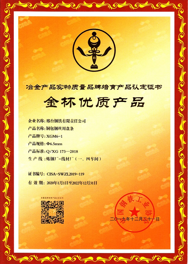 邢鋼銅包鋼絲用盤條、鐵素體和馬氏體不銹鋼盤條獲得“金杯優(yōu)質…