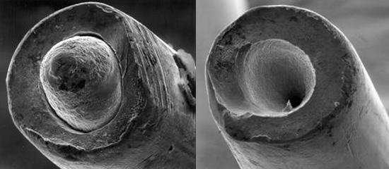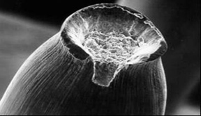 中心毛刺的斷口一般呈杯狀或者錐狀。主要是因?yàn)殇摻z拉拔過(guò)程中表面和內(nèi)部受力不均導(dǎo)致。