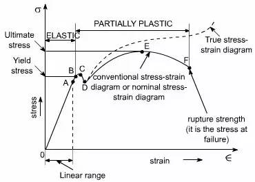 對(duì)于可以發(fā)生拉伸塑性變形的材料,最常用的有兩類曲線:工程應(yīng)力-工程應(yīng)變曲線和真應(yīng)力-真應(yīng)變曲線。它們的區(qū)別在于計(jì)算應(yīng)力時(shí)采用的面積不同,前者用樣品的初始面積,后者用拉伸過程中的實(shí)時(shí)橫截面積。因此,在應(yīng)力-應(yīng)變曲線上,真應(yīng)力一般比工程應(yīng)力高。