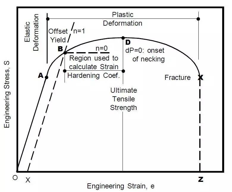拉伸試驗(yàn)是最采用的力學(xué)性能測試試驗(yàn),通過拉伸曲線我們可以獲得一系列的材料力學(xué)性能參數(shù)。那么從拉伸曲線上我們參提取出來哪些有用的信息呢?