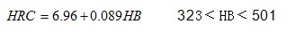 此公式用我國公布的黑色金屬硬度標(biāo)準(zhǔn)數(shù)據(jù)進(jìn)行換算,其HRC誤差基本上在?0.4HRC 范圍內(nèi),其最大誤差也僅士0.9HRC,計算的HV誤差最大為?15HV。