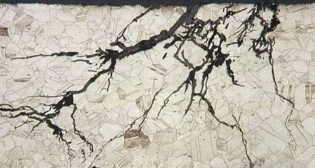 應力腐蝕開裂是奧氏體不銹鋼最常見的破壞形式。大家需要注意,應力腐蝕開裂取決于兩方面主要因素:其一,必須有應力,它可能是外加應力,也可能是殘余應力;其二,應力腐蝕開裂敏感離子,比如鹵族元素離子,尤其以氯離子最為常見。應用奧氏體不銹鋼的地方,時常不是使用其承受應力的能力,因此應該特別關注殘余應力,因為在含有氯離子的環(huán)境中,殘余應力會造成其應力腐蝕開裂。去殘余應力的方法是去應力退火。