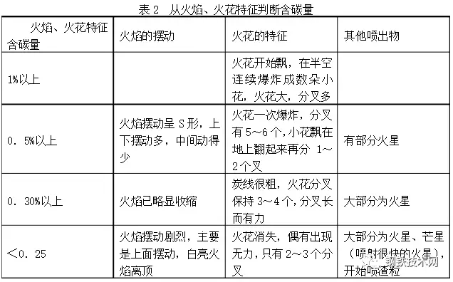 對(duì)于火花的研究,1804年起英國(guó)的門生?塔斯克斯(Manson Tacpues)、1929年給特(T.D.Gat)及日本“火花檢查法研究委員會(huì)”都曾從鋼品種檢查的角度系統(tǒng)研究了如何根據(jù)砂輪上磨出來的火花特征去鑒定鋼的品種。對(duì)于在煉鋼過程中如何用視覺掌握火花的方法的研究是極其貧乏的??椿鸹〞r(shí)感知的對(duì)象是運(yùn)動(dòng)物體,即火花。要看它分叉的數(shù)量,分叉是一種形狀變化?;鸹ǚ植嬷噪y以看到的原因是由其本身及四周的一些因素決定的,如爐口噴出來的碳花體積很小,很密,流動(dòng)速度很快,同時(shí)白色碳花又在白亮火焰的背景上,因此很難識(shí)別碳花,而碳花分叉更難辨別,因?yàn)樘蓟◤臓t口噴出后只在半空中開始分叉,而且分叉的時(shí)間極短促,所以要想觀察到碳花的分叉,就需要用視覺追蹤,把碳花作為一個(gè)運(yùn)動(dòng)物體的運(yùn)動(dòng)軌跡。此外要掌握碳花運(yùn)動(dòng)速度,因?yàn)樘蓟ㄔ诜植嬉郧耙档退俣龋诎肟胀A粢幌码S后分叉,所以還要掌握碳花在空中分叉的位置。碳花在半空停留時(shí)就注意觀察才能看到碳花分叉的數(shù)目。掌握碳花運(yùn)動(dòng)的規(guī)律,由時(shí)間空間定位來觀察碳花分叉情況,在實(shí)踐中證明了是個(gè)好方法。在剛開始學(xué)習(xí)看碳花時(shí),由于碳花很密,可以先從碳花最稀的地方選擇地找一個(gè)來觀察,這樣容易觀察到它的特征,這就是選擇性的部分觀察,學(xué)會(huì)部分觀察后才可進(jìn)行全部觀察。有的煉鋼工沒有掌握這一認(rèn)識(shí)活動(dòng)的規(guī)律,就始終不能看到碳花的分叉,目前在煉鋼工中不能判斷碳花的不乏其人。