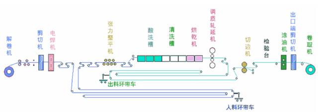 連續(xù)式酸洗是一種高產(chǎn)優(yōu)質(zhì),發(fā)展較快的酸洗方法,它是通過在機組上設(shè)置焊機和活套裝置,使工藝段在換卷時不停機,保證機組連續(xù)運行,但機組長,設(shè)備復雜,投資較高。連續(xù)式酸洗線主要有兩種形式,分別是連續(xù)臥式酸洗機組和連續(xù)塔式酸洗機組。