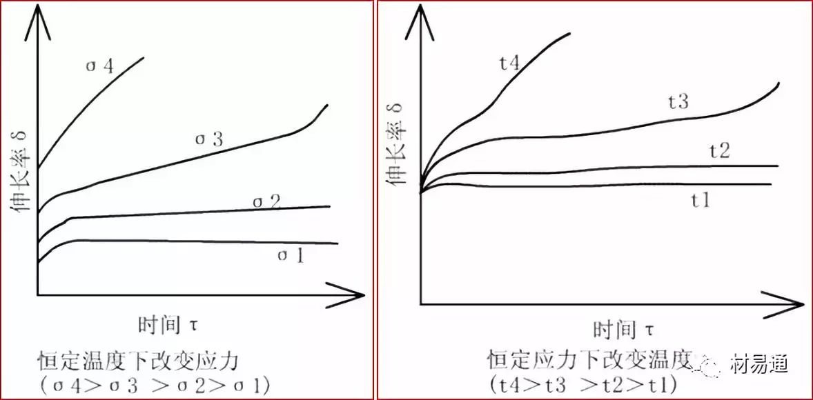 同種材料的蠕變曲線隨應(yīng)力的大小和溫度的高低而不同。