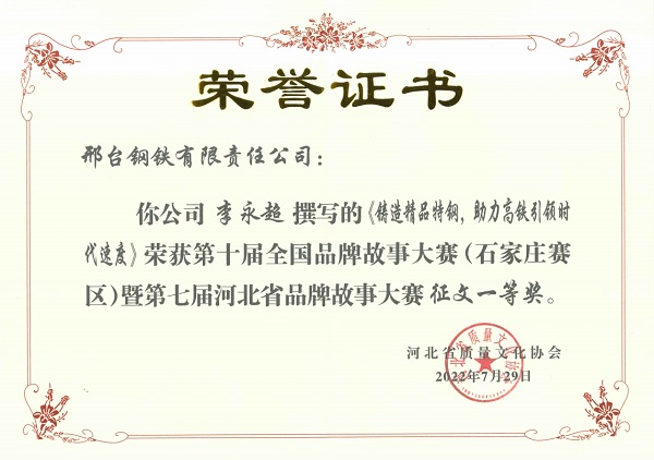 經(jīng)過層層篩選和嚴格的初評、復(fù)評程序,最終邢鋼4篇征文、2個微電影、1個演講作品和1個短視頻脫穎而出,其中《鑄造精品特鋼,助力高鐵引領(lǐng)時代速度》獲征文一等獎,《我的孩子》、《新時代追夢人》、《精益邢鋼,鑄夢啟航》獲征文三等獎;《計量人的一天》與《知明行篤,立誠志廣—創(chuàng)建綠色焦化廠》分別獲微電影二等獎、三等獎;《鑄造精品特鋼,助力高鐵加速度》獲演講比賽二等獎;《邢鋼三人品牌中的巾幗力量》獲短視頻三等獎。此外,公司榮獲“最佳組織獎”,企管部張云鵬獲“優(yōu)秀推進者”稱號。