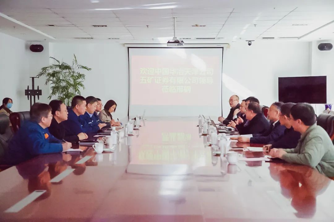 在熱烈、友好的融洽氛圍中,邢鋼公司領導張育明對中國華冶天津公司、五礦證券的領導蒞臨邢鋼表示歡迎,并就邢鋼特鋼之路、公司轉型升級項目等做簡要介紹。他指出,邢鋼專注于工業(yè)用線材,堅持實施精品戰(zhàn)略,已成為國內(nèi)特鋼工業(yè)線材領域的標桿企業(yè)。今后,公司將借力轉型升級搬遷改造的春風,加快建設步伐,引領中國鋼鐵綠色發(fā)展。張育明董事長表示:希望雙方按照“合作共贏、互利互惠”原則,在技術、資金、建設等方面加強合作、共赴美好。