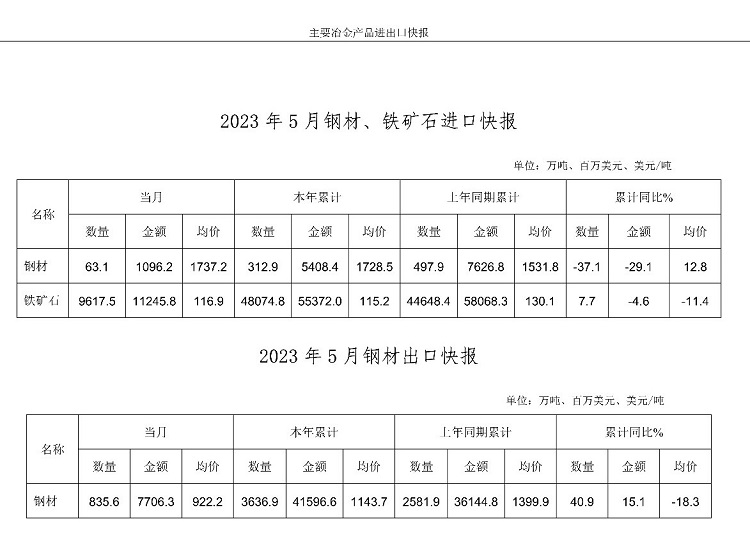 中鋼協(xié):5月主要冶金產(chǎn)品進出口快報