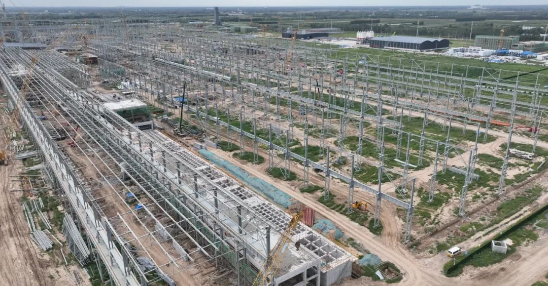 工程車來回穿梭的車轍印、大型機(jī)械的轟鳴聲、矗立的鋼結(jié)構(gòu)和封頂?shù)慕ㄖ黧w、塔吊揮舞著長臂加緊為建設(shè)者運(yùn)送物資……日前,位于威縣高新區(qū)的邢臺鋼鐵有限責(zé)任公司搬遷升級項目(以下簡稱“邢鋼搬遷升級項目”)正在有序緊張施工中,2000余名工人分布在各個作業(yè)面,項目已全面進(jìn)入地上鋼結(jié)構(gòu)及主線設(shè)備基礎(chǔ)施工階段,項目一期預(yù)計今年年底建成投產(chǎn)。